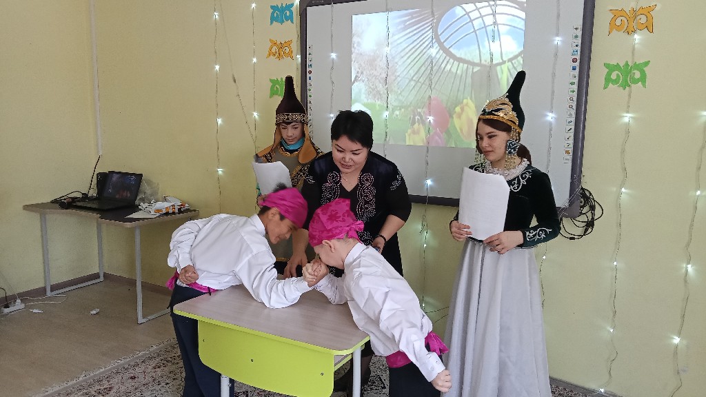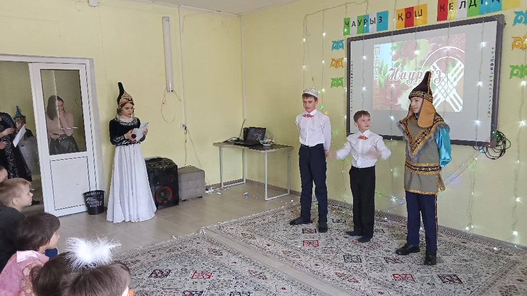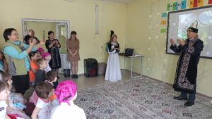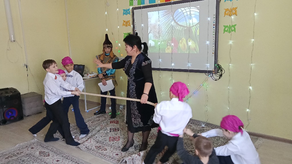 С приходом Весны мы встречаем самый любимый праздник Наурыз! Праздник обновления, мира и добра! Ведущие мероприятия – воспитатель Қыдырбек А.Қ. и воспитанница Кулчанова Диана обратились ко всему коллективу детей и взрослых с пожеланием радости, добра и благополучия в будущем году. В праздничном концерте прозвучали замечательные песни в исполнении детей, стихи, танцевальные композиции, сказочные персонажи, которых представили дети. Мы — народ, который чтит семейные традиции. Обряд «Тұсау кесу» показала помощник воспитателя Базарова Г.С. с участием маленького мальчика Диара. И конечно традиционные народные игры: перетягивание каната, армрейслинг…Дети получили хороший заряд бодрости и праздничное настроение.