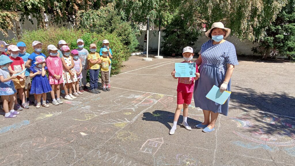 В это день ребята стали участниками творческого конкурса рисунков на асфальте «Мир глазами детей» совместно с КГКП «Стация юных техников» г. Усть-Каменогорск (директор Жаркембаев Е.К.). Всем призерам конкурса рисунков вручены грамоты.