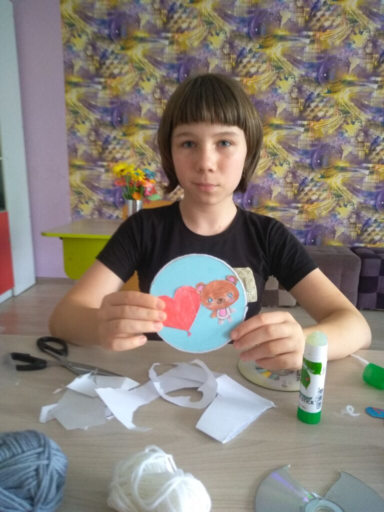 «Мастерим вместе». У каждого дома найдется хотя бы один блестящий СД диск. Диски ушли в прошлое, но не спешите их выбрасывать. Это прекрасный материал для детских поделок и отличный способ провести время. Вместе с воспитателем Шульгиной И.Г. ребята выполнили творческие работы на тему «Мульт -герои», «Мои фантазии».